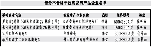 本報(bào)訊記者龔漢斌報(bào)道:近日,江西省質(zhì)監(jiān)局公布了近期對干壓陶瓷磚產(chǎn)品進(jìn)行省級產(chǎn)品質(zhì)量監(jiān)督抽查的結(jié)果。質(zhì)監(jiān)部門共抽查了51家生產(chǎn)企業(yè)生產(chǎn)的52批次產(chǎn)品,抽樣合格率90.4%。抽查結(jié)果表明,本次抽查的陶瓷磚其放射性核素限量指標(biāo)均達(dá)到了標(biāo)準(zhǔn)規(guī)定的要求;但仍有部分產(chǎn)品存在一些問題。 本次抽查的5批次不合格產(chǎn)品中,有1批次產(chǎn)品的破壞強(qiáng)度達(dá)不到標(biāo)準(zhǔn)規(guī)定要求,兩批次產(chǎn)品的斷裂模數(shù)指標(biāo)達(dá)不到標(biāo)準(zhǔn)規(guī)定要求。強(qiáng)度性能指標(biāo)不達(dá)標(biāo)易造成產(chǎn)品達(dá)不到應(yīng)有的承重能力,在使用中產(chǎn)生開裂、破碎或表面缺陷等現(xiàn)象,影響產(chǎn)品的使用壽命和使用性能。有4批次產(chǎn)品的吸水率達(dá)不到標(biāo)準(zhǔn)規(guī)定要求。吸水率不達(dá)標(biāo),將影響消費(fèi)者的正常使用。 對本次監(jiān)督抽查不合格的產(chǎn)品,省質(zhì)監(jiān)局將依法嚴(yán)肅處理。