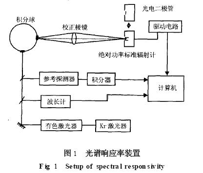 如果不滿足以上4 個條件, (6) 式將不適用。為了提高光譜分辨率, 要求雙單色儀的光譜帶寬僅在幾納米內, 其結果是僅有幾毫瓦的激光功率可以利用。這對一個絕對輻射計同光電二極管直接比較是行不通的, 因此必須在其中間加入更靈敏的二級標準作為傳遞。